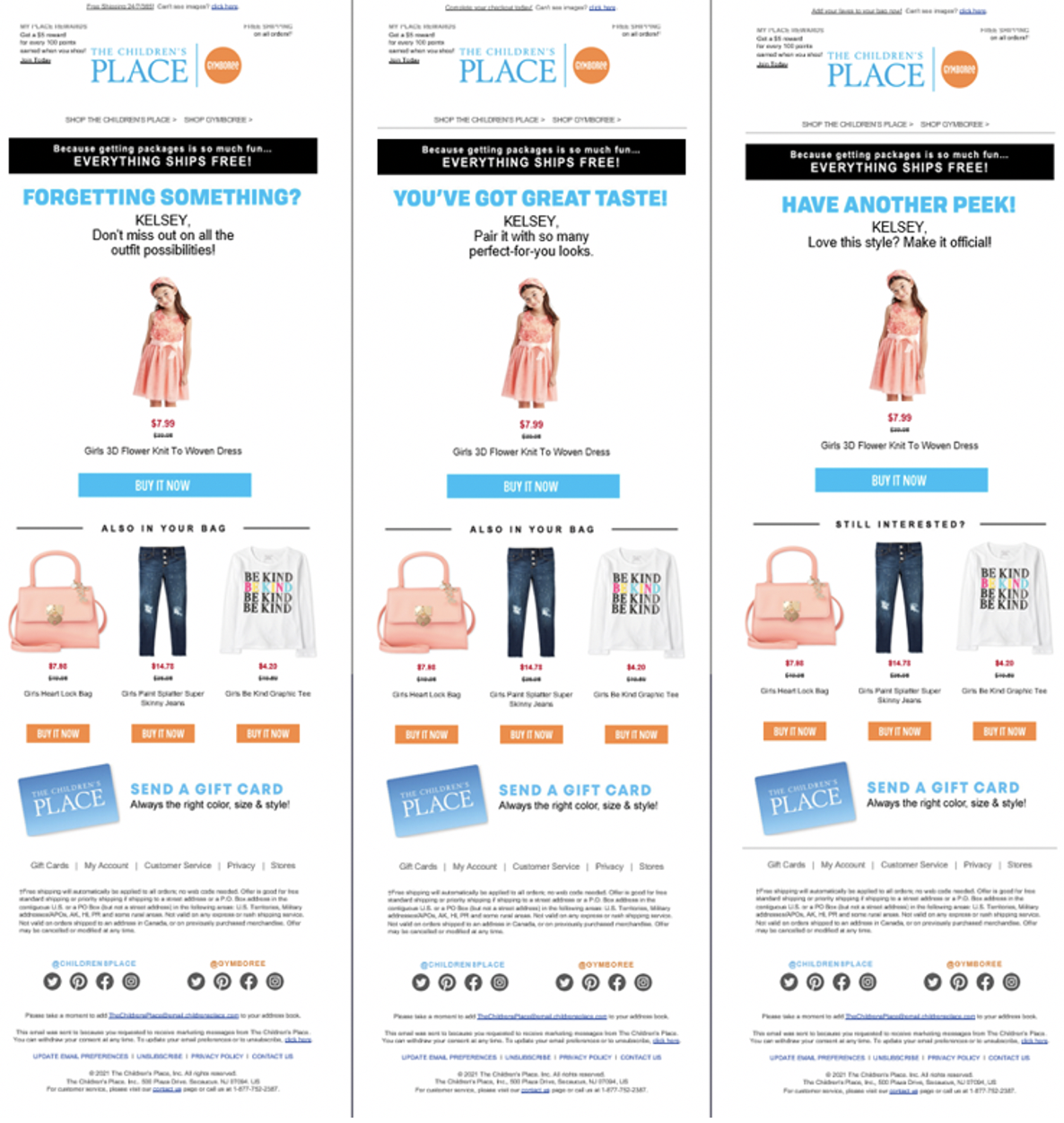 Visuaalse näite saamiseks vaata järgmist kirja The Children’s Place’ilt: